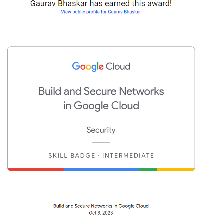 Build and Secure Networks in Google Cloud . Security . SKILL BADGE - INTERMEDIATE