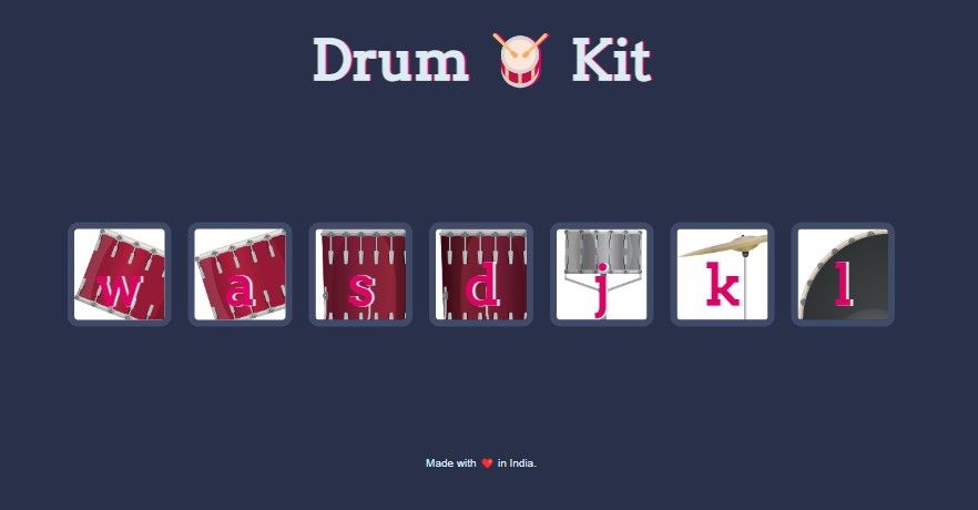 The Drum Kit: An interactive web page featuring a virtual drum set for musical enjoyment and creativity.