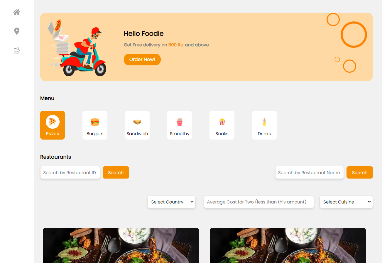 A food app that lists and searches restaurants with filters for cuisine and location, built using the MERN stack.