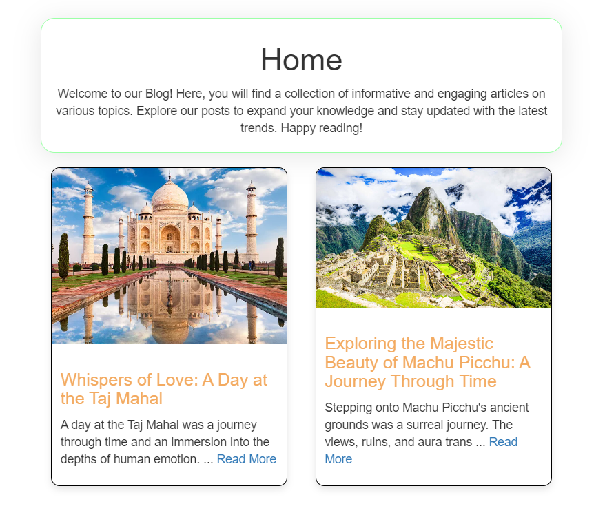 A visually appealing Blog Website with easy publishing, navigation, and exploration of posts, creating an engaging user experience.