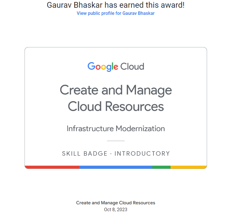 Create and Manage Cloud Resources : Infrastructure Modernization. SKILL BADGE - INTRODUCTORY