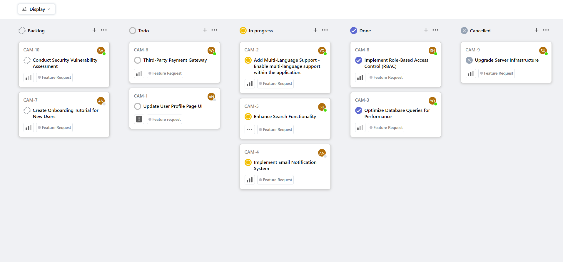 A Kanban Board UI visually organizes tasks into columns (e.g., "To Do," "In Progress," "Done"). Users can drag and drop tasks to track progress.